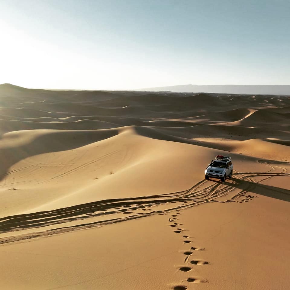 Traversez les étendues désertiques pour atteindre les dunes et rejoindre l’un de nos bivouacs.